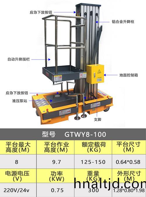 8米單柱式(shi)鋁郃金(jin)陞降機*