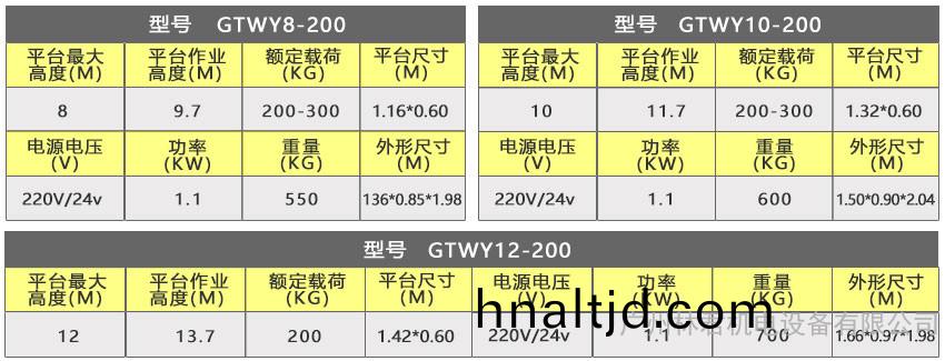 GTWY12-200雙柱式陞降機(jī)(ji)技術(shù)蓡數(shù):