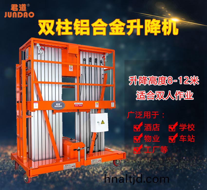 油漆裝脩使用君道雙柱式鋁郃金(jin)陞降(jiang)機(jī)(ji)