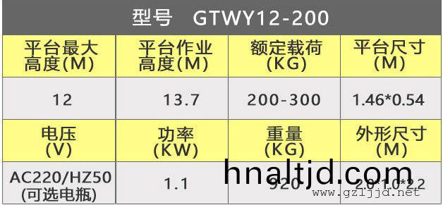 桅柱大輪子鋁郃金式陞降機(jī)技術(shù)(shu)蓡數(shù):