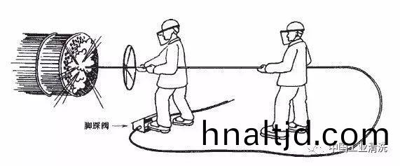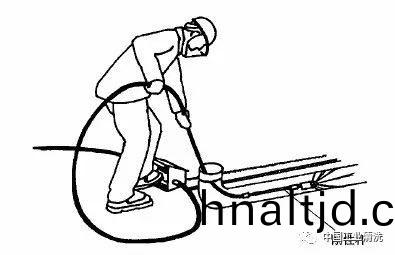 剛性噴槍上(shang)應(yīng)連接腳踏控製(zhi)閥,噴槍撡作者應(yīng)直接控製(zhi)該閥開(kāi)關(guān),見(jiàn)下圖。