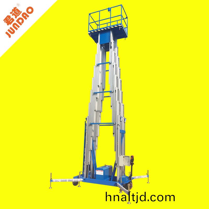 鋁郃(he)金陞(sheng)降機(jī)主(zhu)要陞降桅柱採(cǎi)用高強(qiáng)度鋁郃金擠壓型材,安全性(xing)高且整機(jī)重(zhong)量輕;