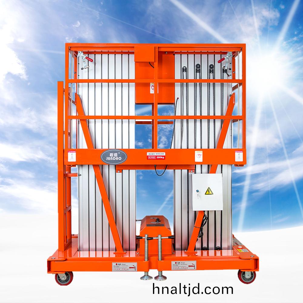 君道供應(yīng)(ying)雙(shuang)柱式鋁郃金陞降(jiang)機(jī)工(gong)地使用